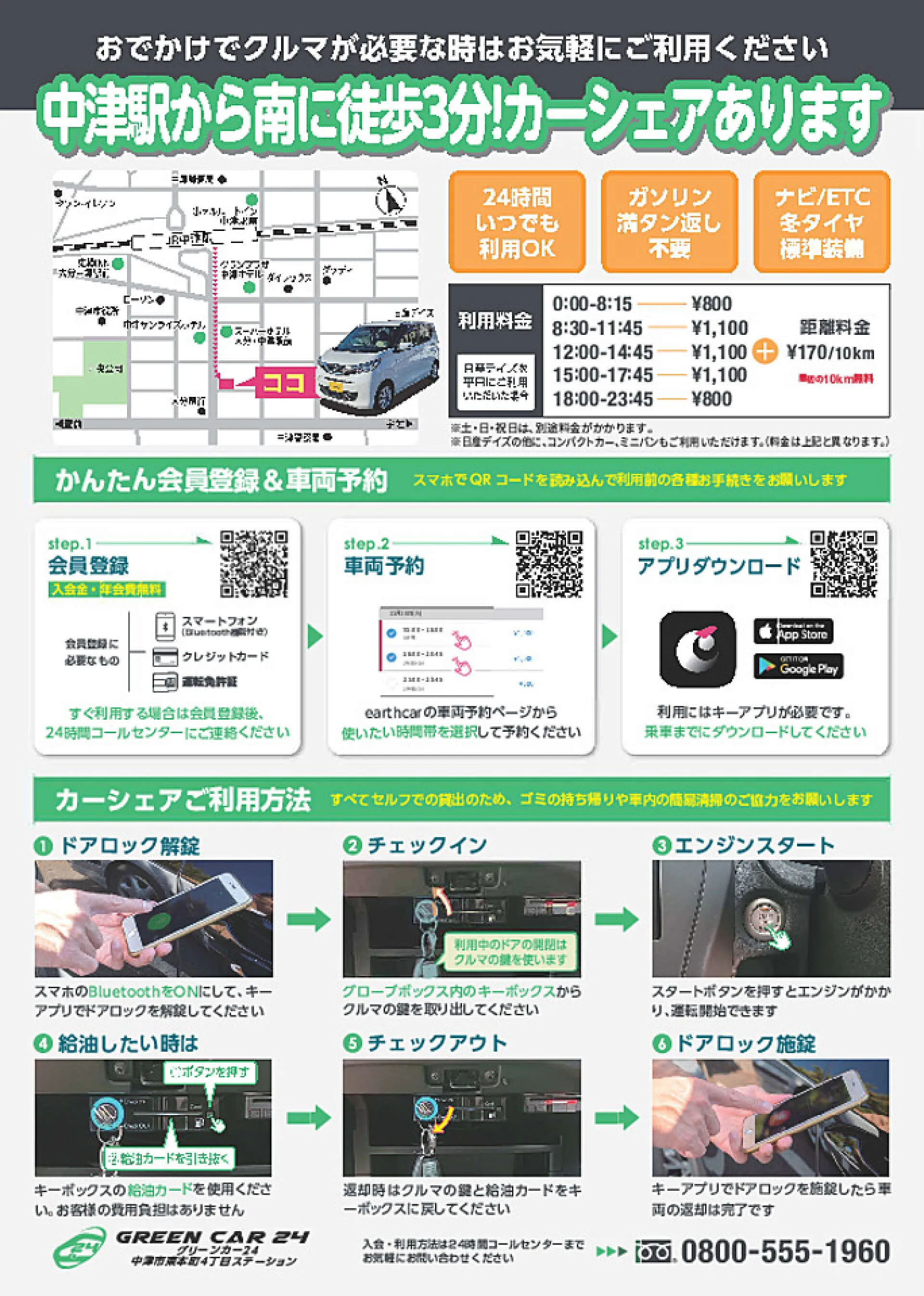 中津市東本町ステーションが出てきますので、こちらから車種を決めてご予約ください。